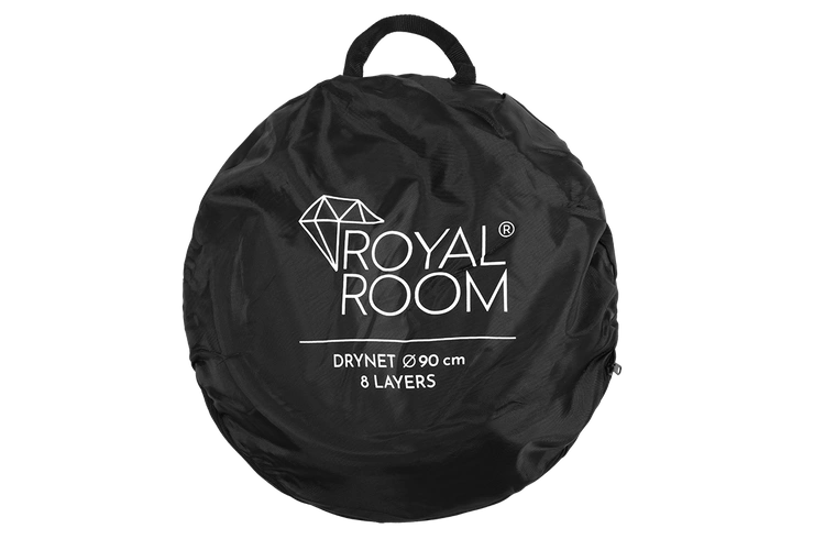 RoyalRoom suszarka dostarczana jest w okrągłej foliowej torbie i jest gotowa do użytku w kilka sekund.