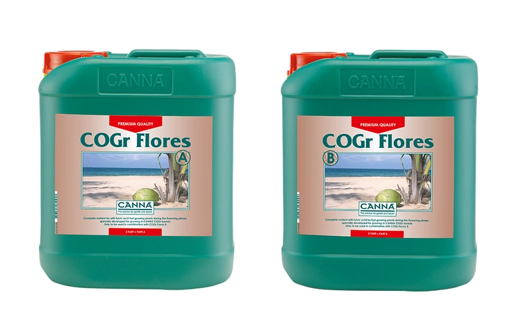 CANNA COGr Flores A/B to profesjonalny, dwuskładnikowy nawóz mineralny przeznaczony do stosowania w fazie kwitnienia roślin uprawianych na matach kokosowych COGr. Jego bogaty skład został zoptymalizowany tak, by wspierać produkcję kwiatów i owoców, zapewniając maksymalne plony przy zachowaniu zdrowia i siły roślin.