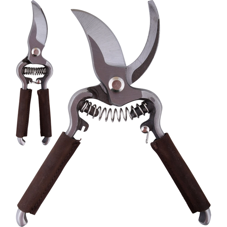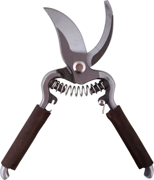 Ostrza wykonane są ze stali węglowej (carbon steel), co zapewnia efektywne i precyzyjne cięcie gałęzi, kwiatów czy pędów. Uchwyt z ciemnej skóry dodaje elegancji i komfortu chwytu, czyniąc pracę bardziej przyjemną nawet przy częstym użyciu.