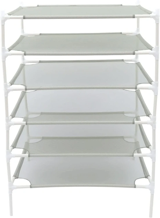 Przewiewny materiał zapewnia swobodną cyrkulację powietrza pomiędzy poziomami, co pozwala na równomierne i naturalne suszenie bez ryzyka gromadzenia wilgoci i powstawania pleśni. Otwarta forma suszarki umożliwia łatwy dostęp do każdej półki oraz bieżącą kontrolę procesu suszenia.